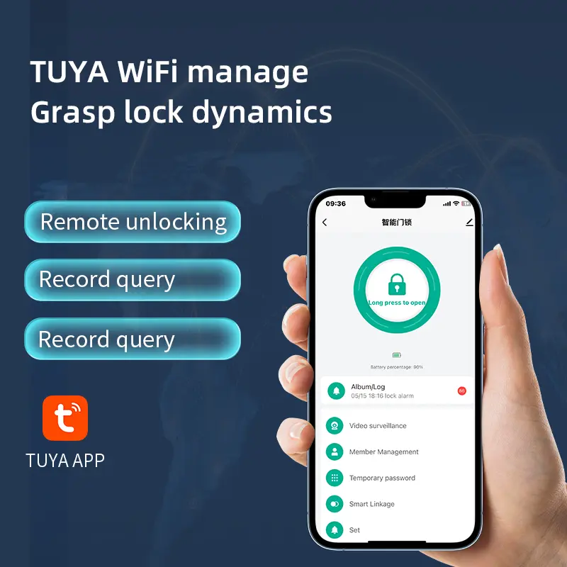 - Mobiele APP Ontgrendeling op afstand: Ondersteunt bediening op afstand via Graffiti APP of speciale deurslot-APP, waardoor real-time toegang tot deurinformatie mogelijk wordt voor traceerbare ontgrendeling.